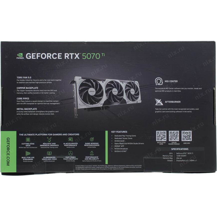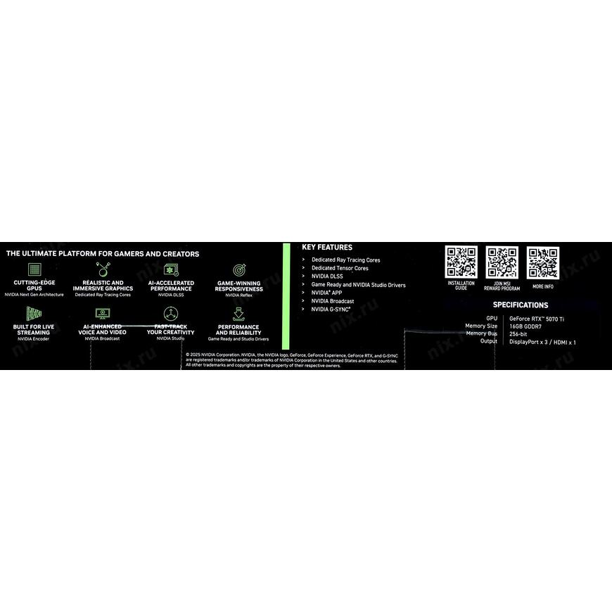 NVIDIA Ansel (создание игровых фотографий профессионального качества), Dual Bios, NVIDIA DLSS 4, NVIDIA Reflex 2, NVIDIA Broadcast, Resizable BAR, NVIDIA FreeStyle, NVIDIA ShadowPlay, NVIDIA Omniverse