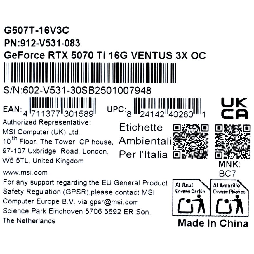 RTX 5070 Ti 16G VENTUS 3X OC