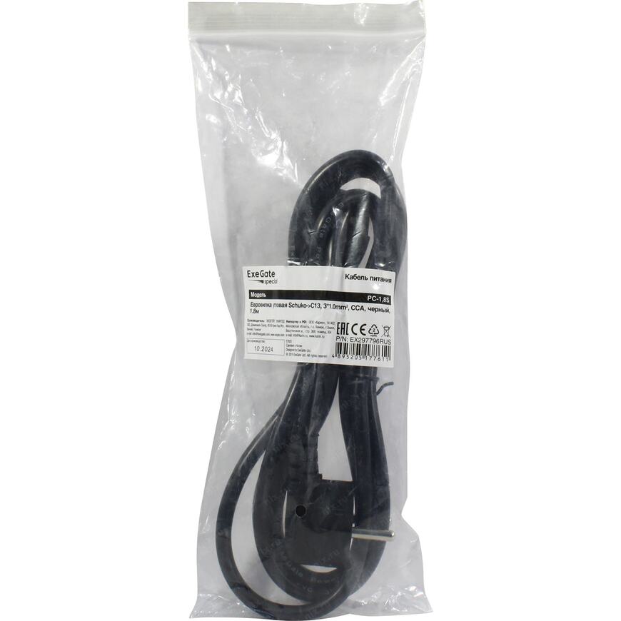 Кабель для подключения к электросети системного блока или периферийных устройств со встроенным блоком питания. Евровилка угловая.