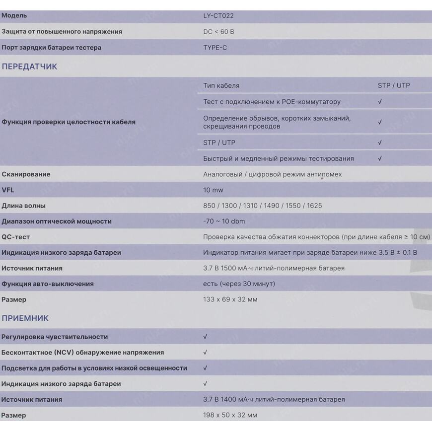 Зажимы типа "крокодил", Наушники, Футляр, кабель USB A - C для зарядки аккумулятора, кабель-адаптеры RJ45-RJ45 и RJ12-RJ12