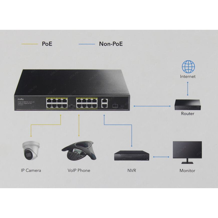 CUDY Неуправляемый коммутатор (2 x 1 Гбит\/с, 16 портов IEEE 802.3at (PoE+))
