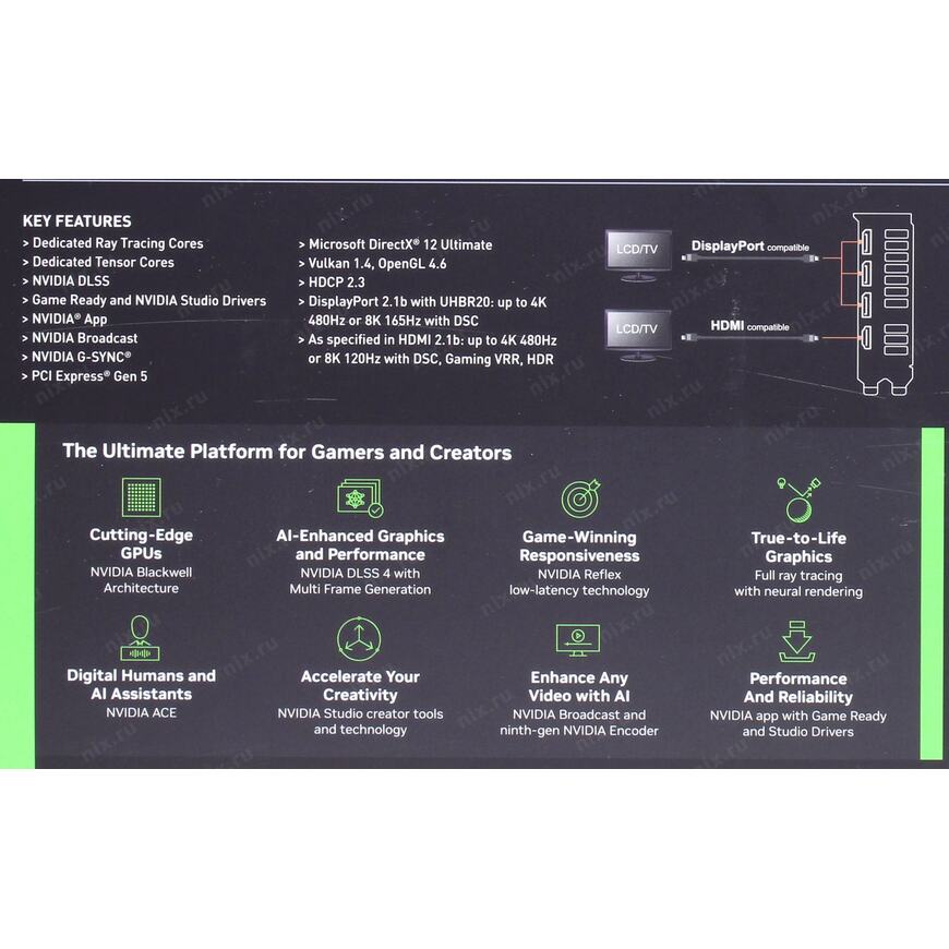 NVIDIA Ansel (создание игровых фотографий профессионального качества), Dual Bios, NVIDIA DLSS 4, NVIDIA Reflex 2, NVIDIA Broadcast, Resizable BAR, NVIDIA FreeStyle, NVIDIA ShadowPlay, NVIDIA Omniverse