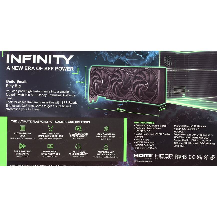 NVIDIA Ansel (создание игровых фотографий профессионального качества), Dual Bios, NVIDIA DLSS 4, NVIDIA Reflex 2, NVIDIA Broadcast, Resizable BAR, NVIDIA FreeStyle, NVIDIA ShadowPlay, NVIDIA Omniverse