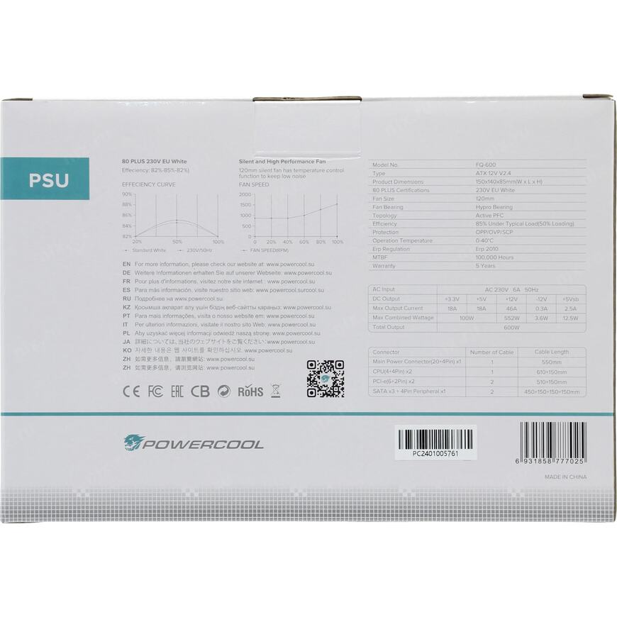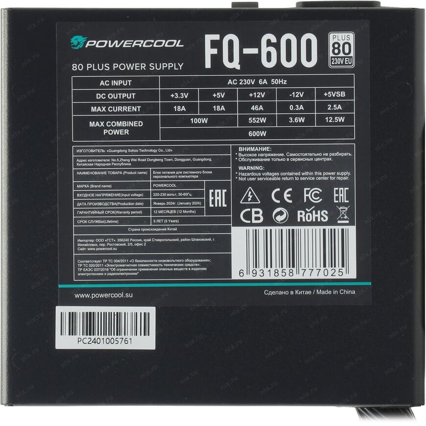 +3.3V - 18A, +5V - 18A, +12V - 46A, +5VSB - 2.5A, -12V - 0.5A