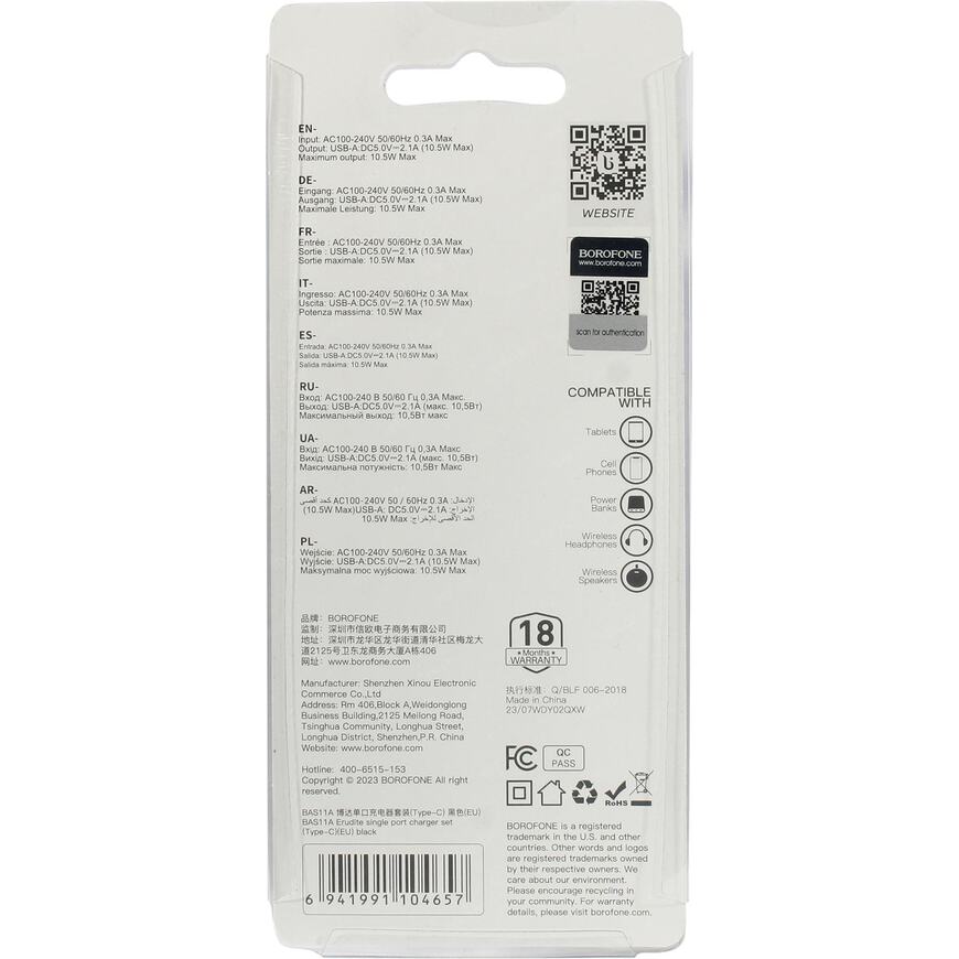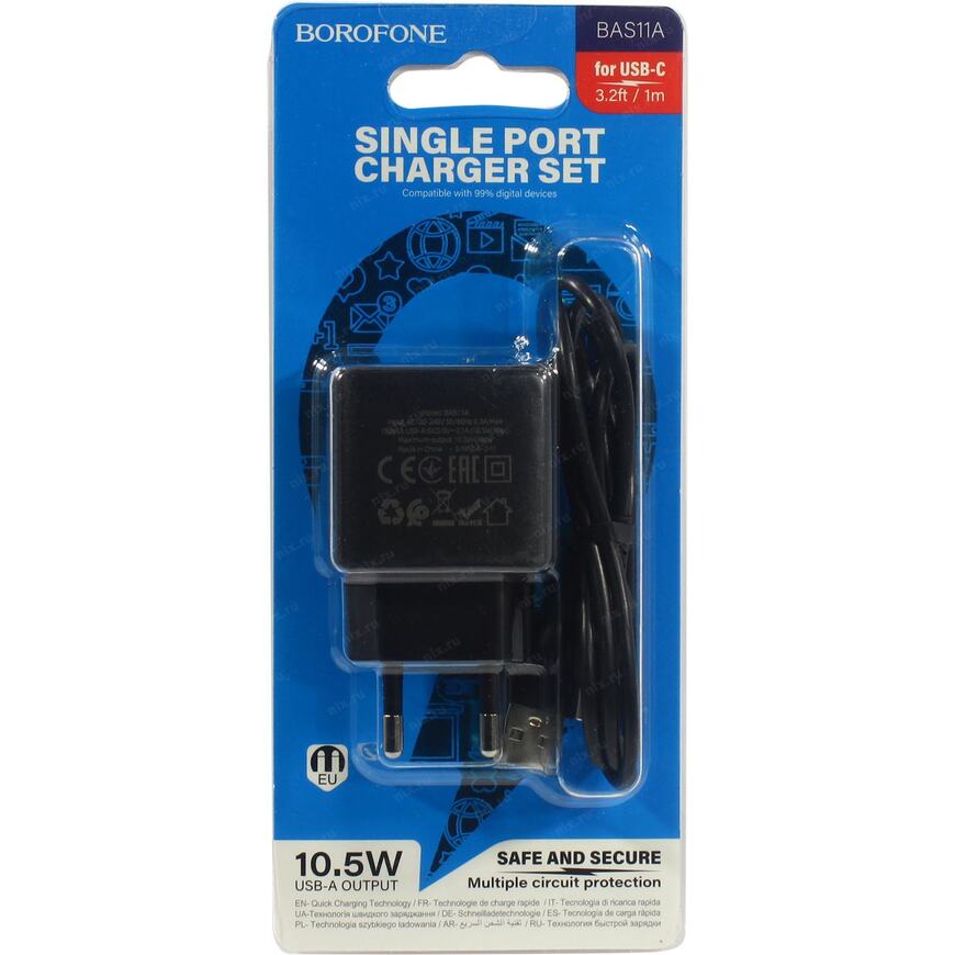 Зарядное устройство с портом USB Type A мощностью 10.5 Вт. В комплекте кабель на USB-C