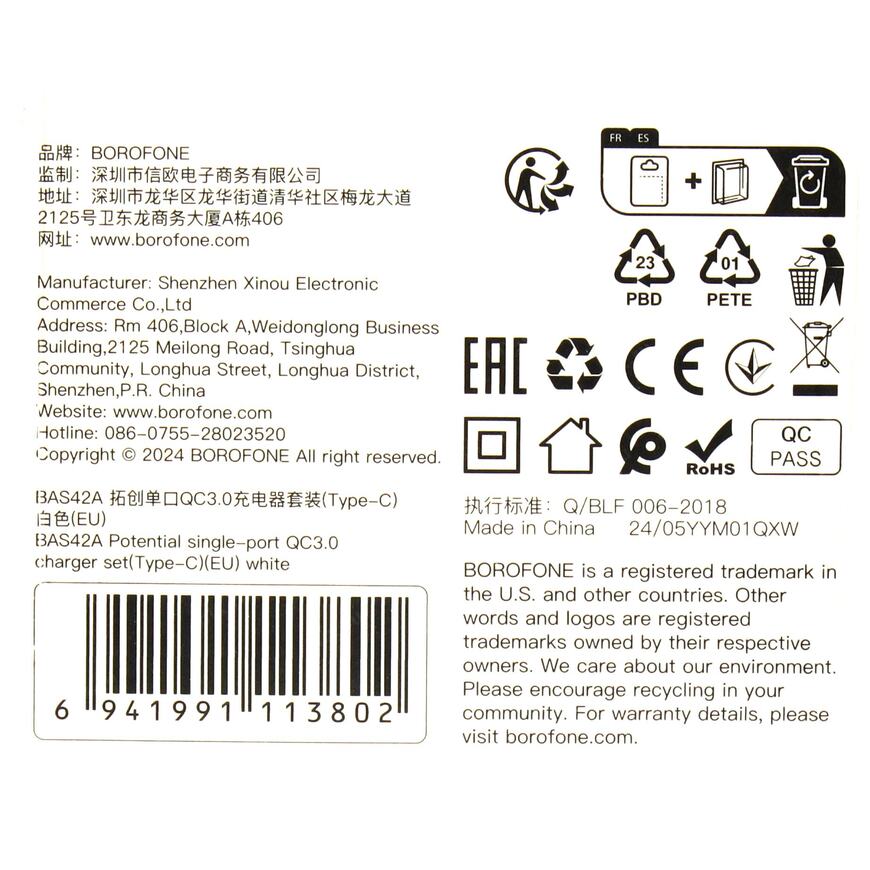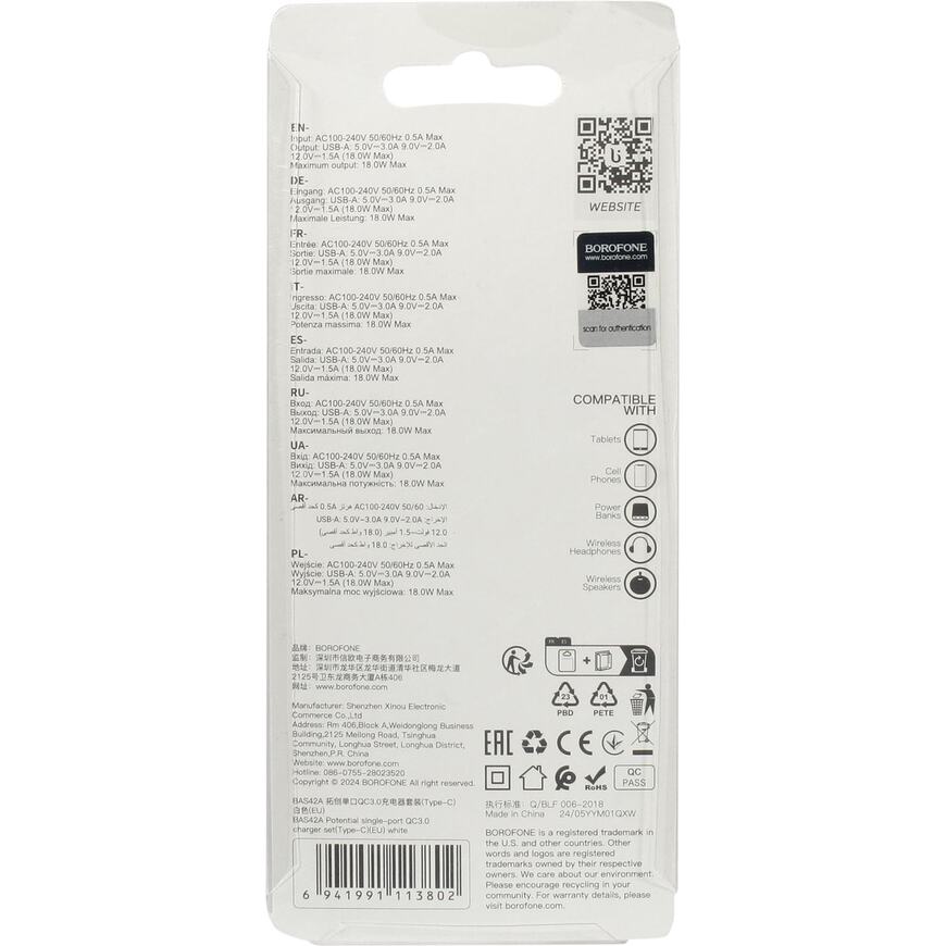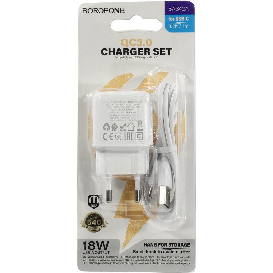Зарядное устройство с портом USB Type A мощностью 18 Вт. В комплекте кабель на USB-C