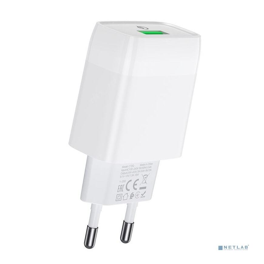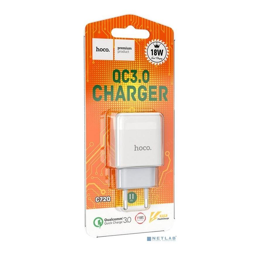 [Аксессуар] HOCO HC-32514 C72Q/ Сетевое ЗУ/ QC 3.0/ 1 USB/ Выход: 5V_9V_12V, 18W/ White