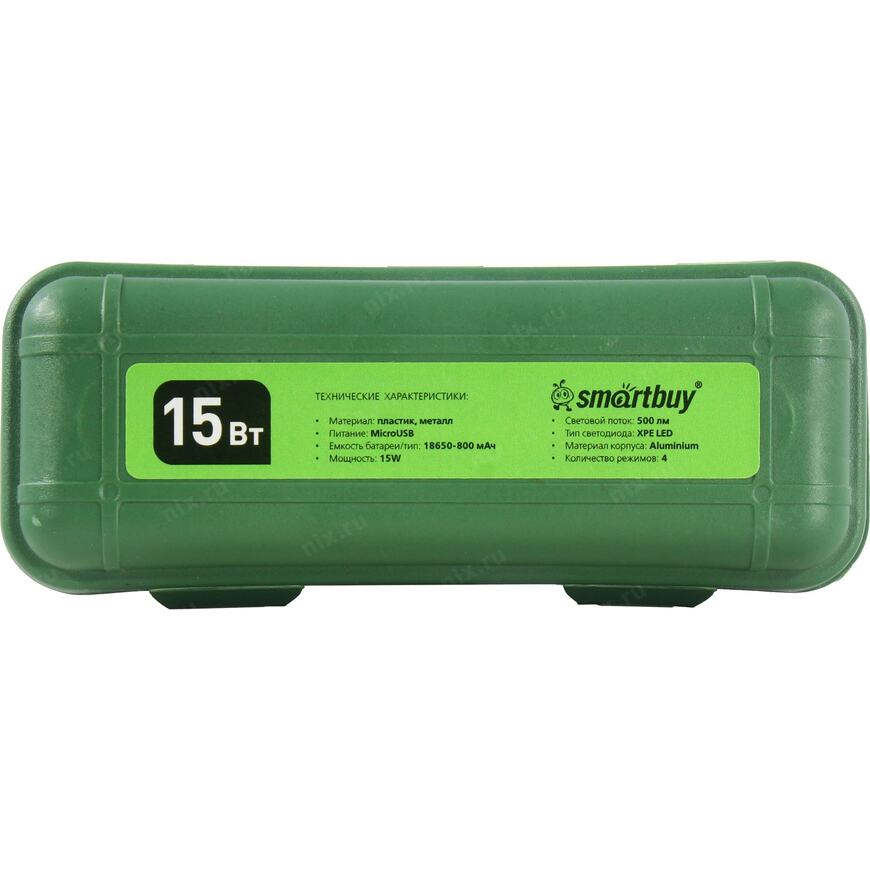 Фонарь аккумуляторный XPE LED, MicroUSB, алюминиевый, 4 режима, 18650, кейс, кабель, 11.7хd3 cм, Smartbuy