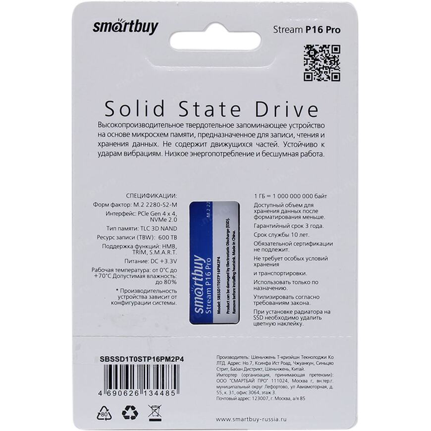 SSD Smartbuy Stream P12 - это высокопроизводительный внутренний твердотельный накопитель, предназначенный для использования в настольных компьютерах и ноутбуках. Форм-фактор M.2 2280 и интерфейс NVMe обеспечивают высокую совместимость и позволяют установить SSD диск в большинство современных ПК и ноутбуков, имеющих разъем M.2. Устройство обеспечивает высокую скорость чтения и записи данных, абсолютно бесшумное, легкое и имеет низкое энергопотребление.; В серии Stream P12 используется флэш-память TLC 3D NAND, которая обеспечивает высокую плотность хранения данных и долгий срок службы.; Время наработки на отказ - 1500000 часов, что гарантирует стабильную работу и надежность устройства на протяжении длительного времени.; Новый SSD не содержит данных. При использовании SSD в качестве системного, требуется установка на него операционной системы. При установке нового SSD в рабочий ПК может потребоваться инициализация диска. В ОС Windows для инициализации необходимо воспользоваться разделом «Управление дисками».; SSD данной линейки не предназначены для использования в серверах, NAS и для добычи криптовалюты.
