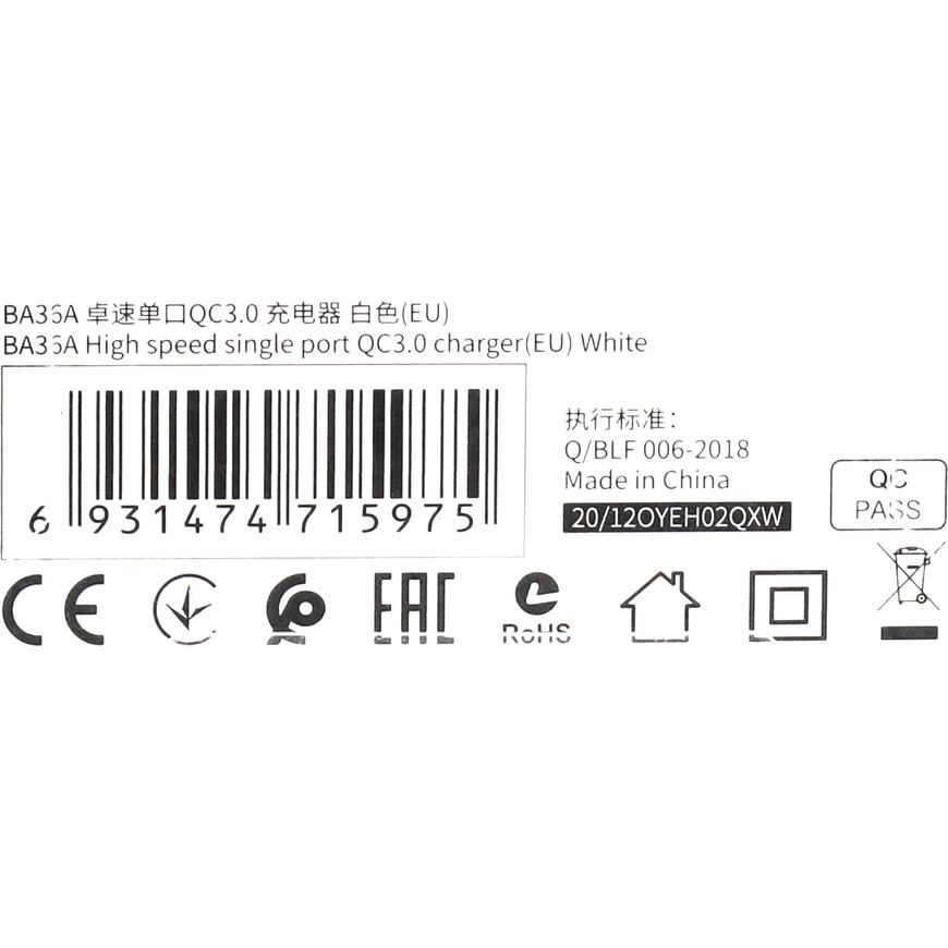 Зарядное устройство с портом USB Type A мощностью 18 Вт.