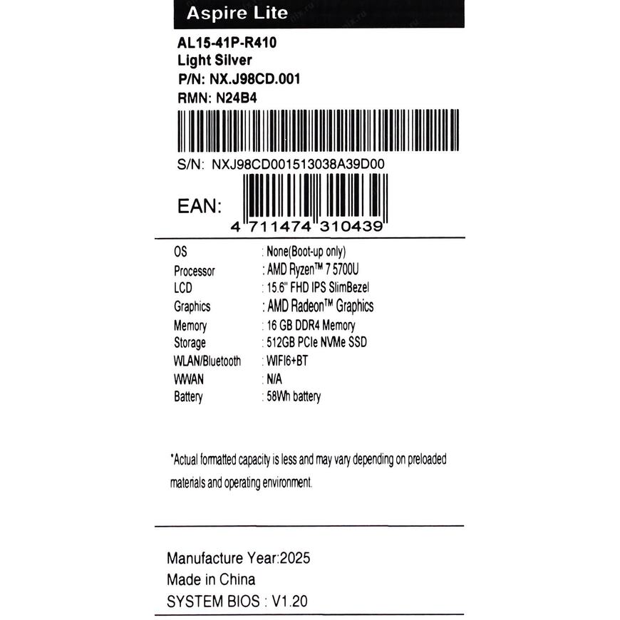 Без ОС (может быть установлен DOS, Linux, другие бесплатные ОС или noOS)