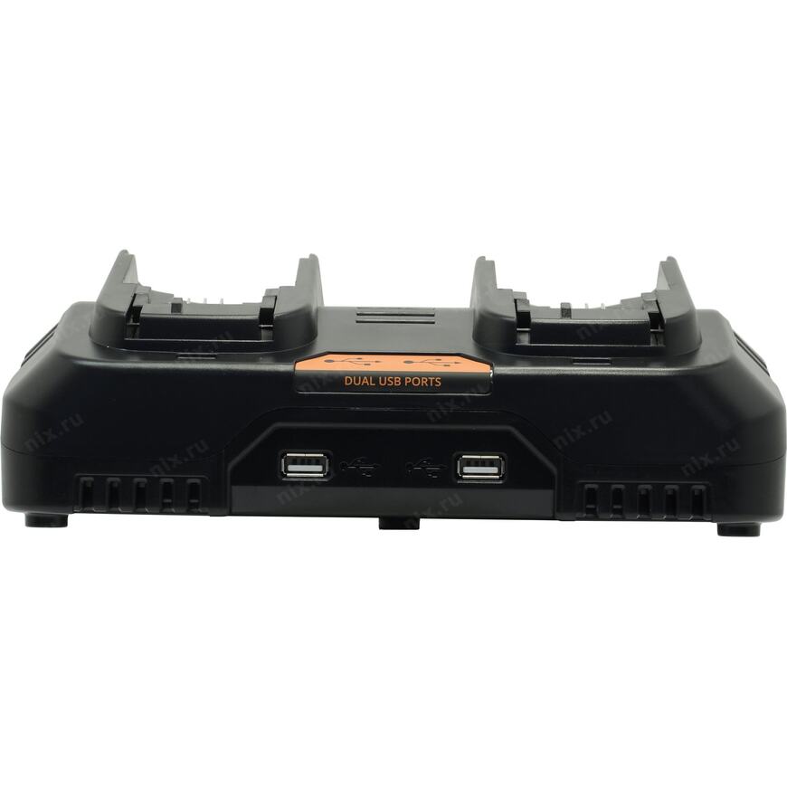 Универсальное зарядное устройство, позволяющее заряжать сразу 2 аккумулятора (аналог DeWalt XR DCB132) с разным напряжением питания. Так же имеется 2 выхода USB для зарядки USB гаджетов