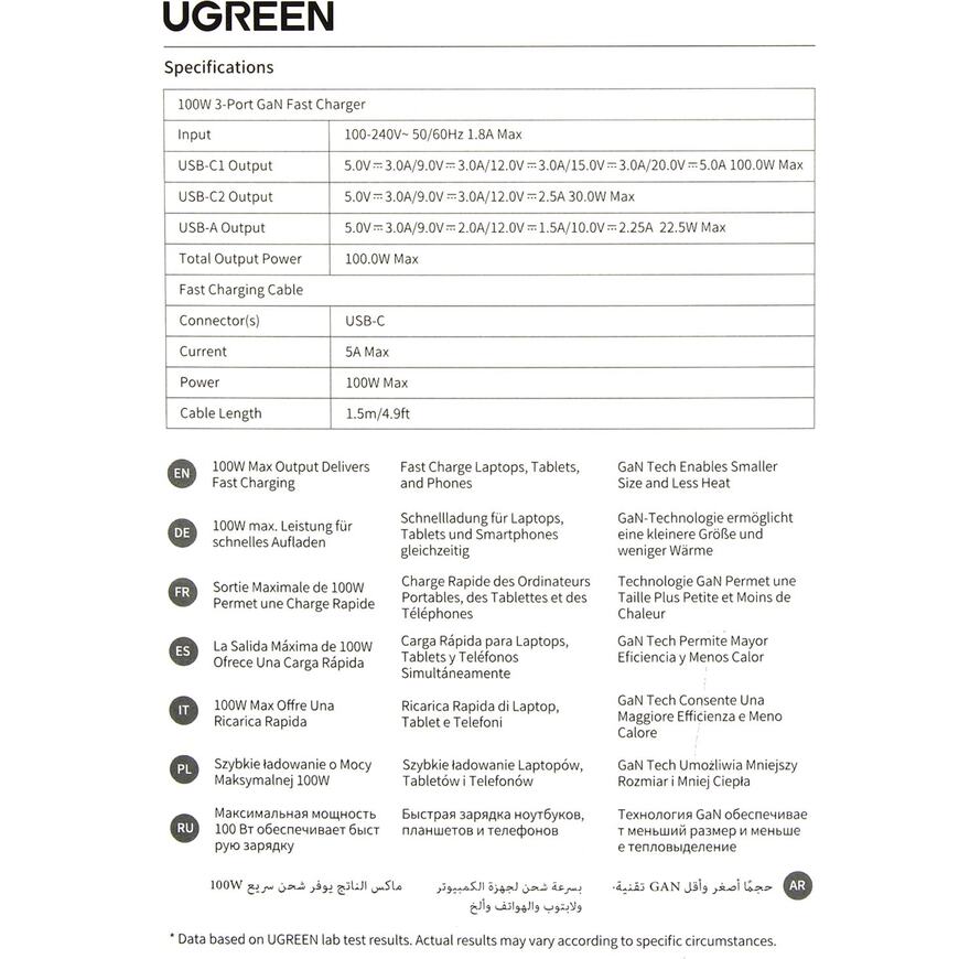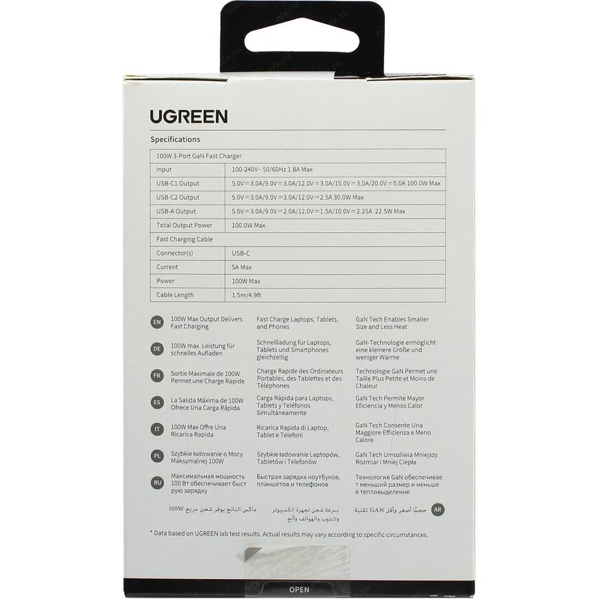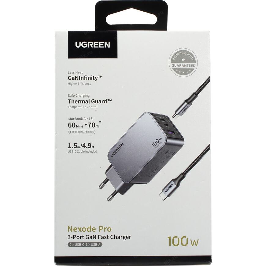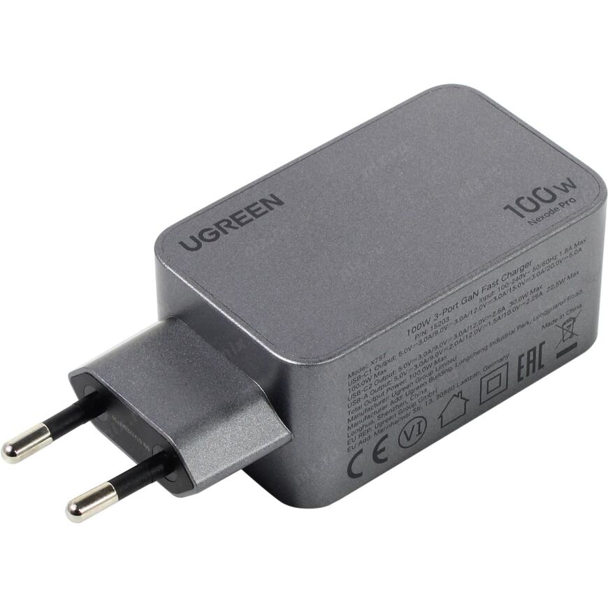 Зарядное устройств с портами USB Type C (2 шт) и USB Type A и поддержкой USB Power Delivery мощностью до 100 Вт. Благодаря применению GaN (нитрид галлия) удалось сделать устройство компактным и эффективным. При одновременном подключении трех портов суммраная мощность 100 Вт.