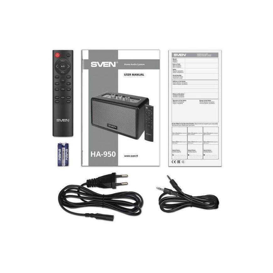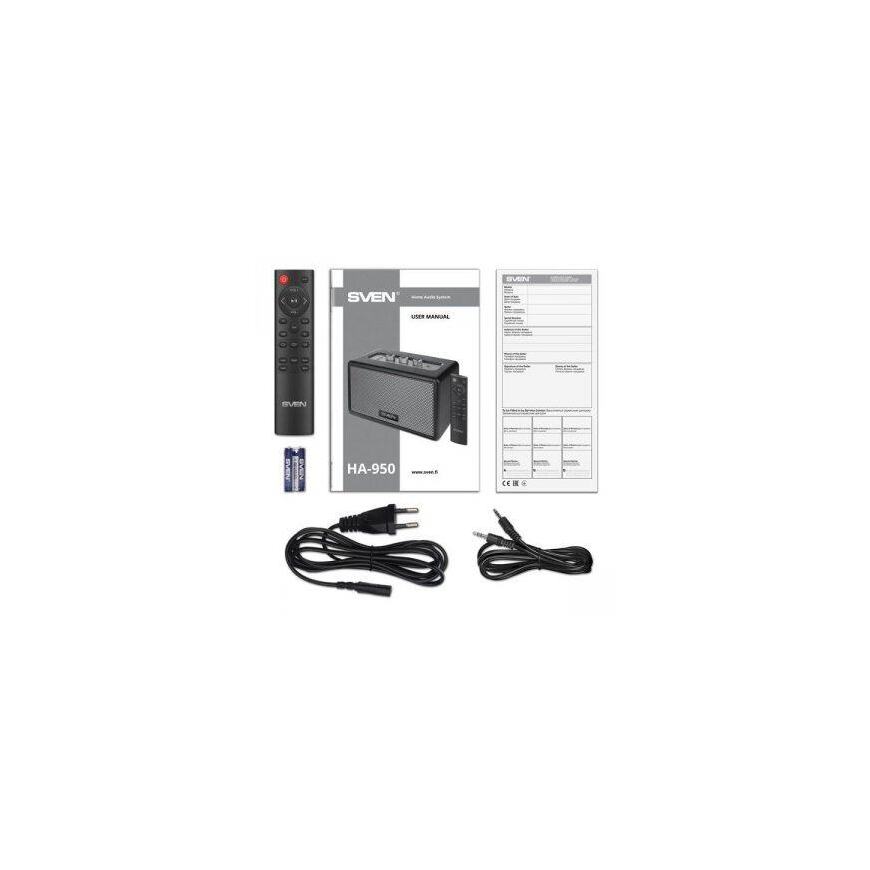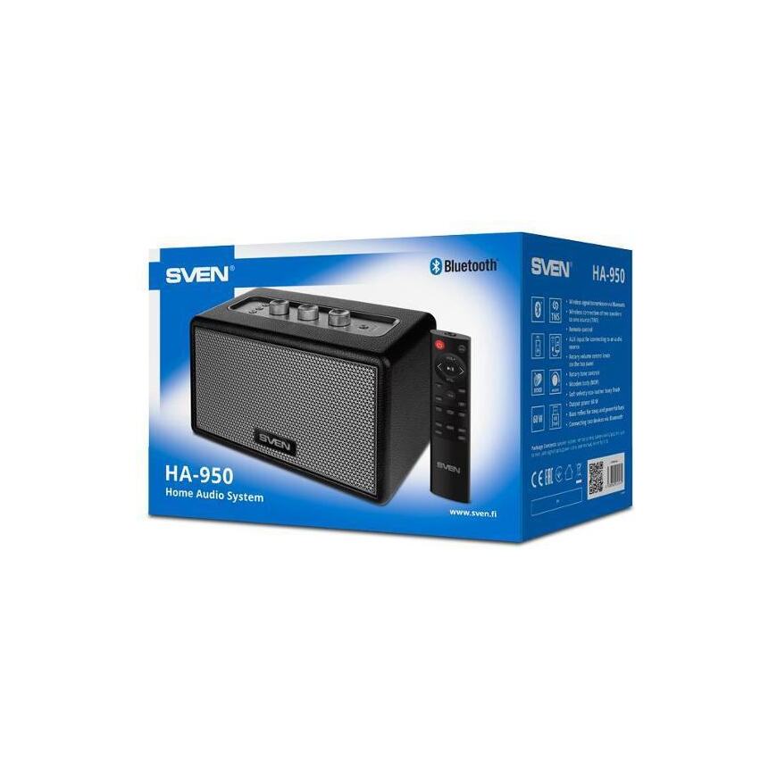 Музыкальная система Sven HA-950 - модель в прочном корпусе из MDF с отделкой из приятной на ощупь экокожи. Установка осуществляется на две пары конических резиновых ножек. В устройстве предусмотрена поддержка ОС iOS, Android.