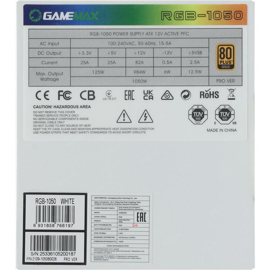 +3.3V - 25A, +5V - 25A, +12V - 82A, +5VSB - 2.5A, -12V - 0.5A