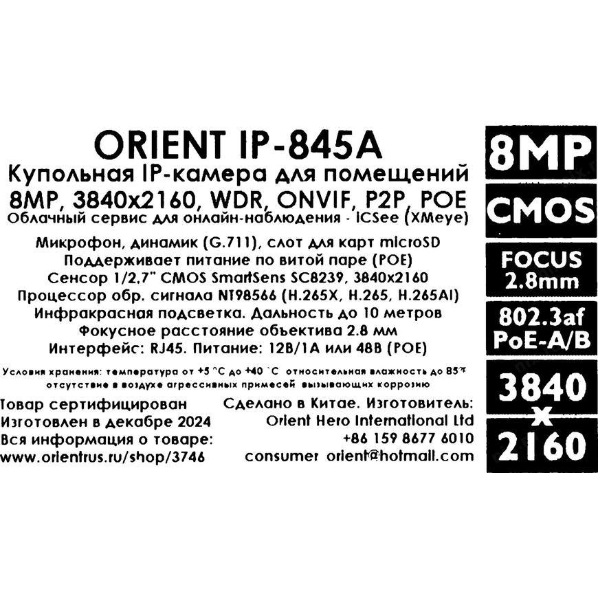 Orient (3840x2160, f=2.8mm, 1UTP 100Mbps PoE, microSD, микрофон)