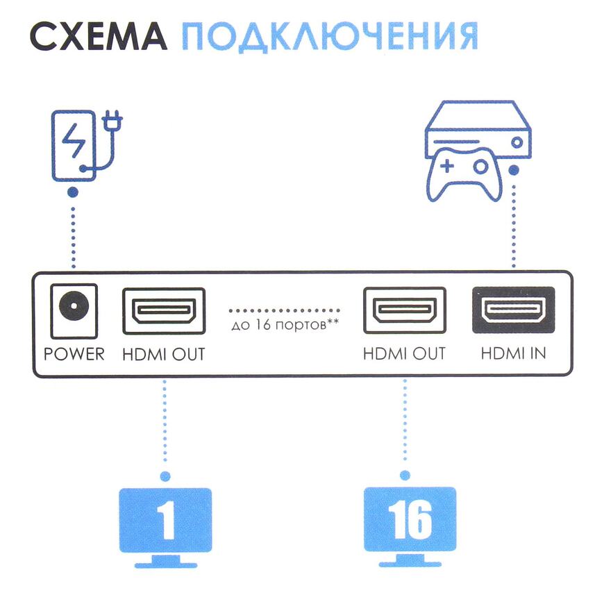 Orient HDMI Splitter (1in -> 4out, ver2.0b) + б.п.