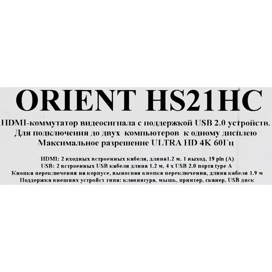 Orient 2-port HDMI KVM Switch (клавиатураUSB+мышьUSB+HDMI)