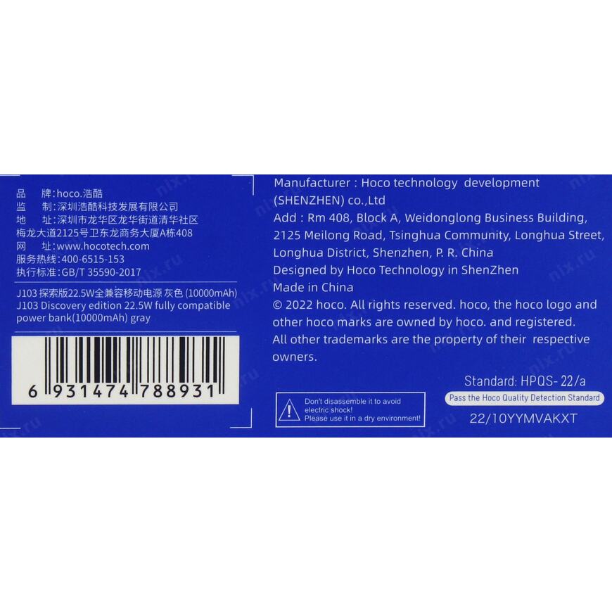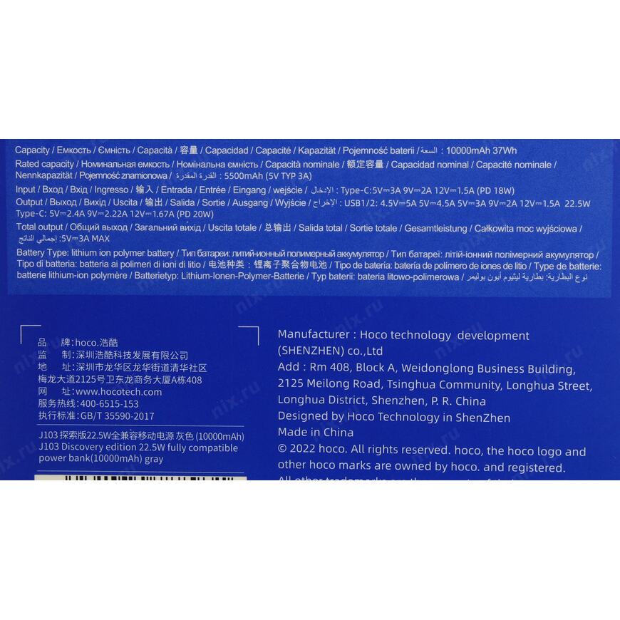 Внешний аккумулятор 10000 mAh с быстрой зарядкой Hoco J101 Astute