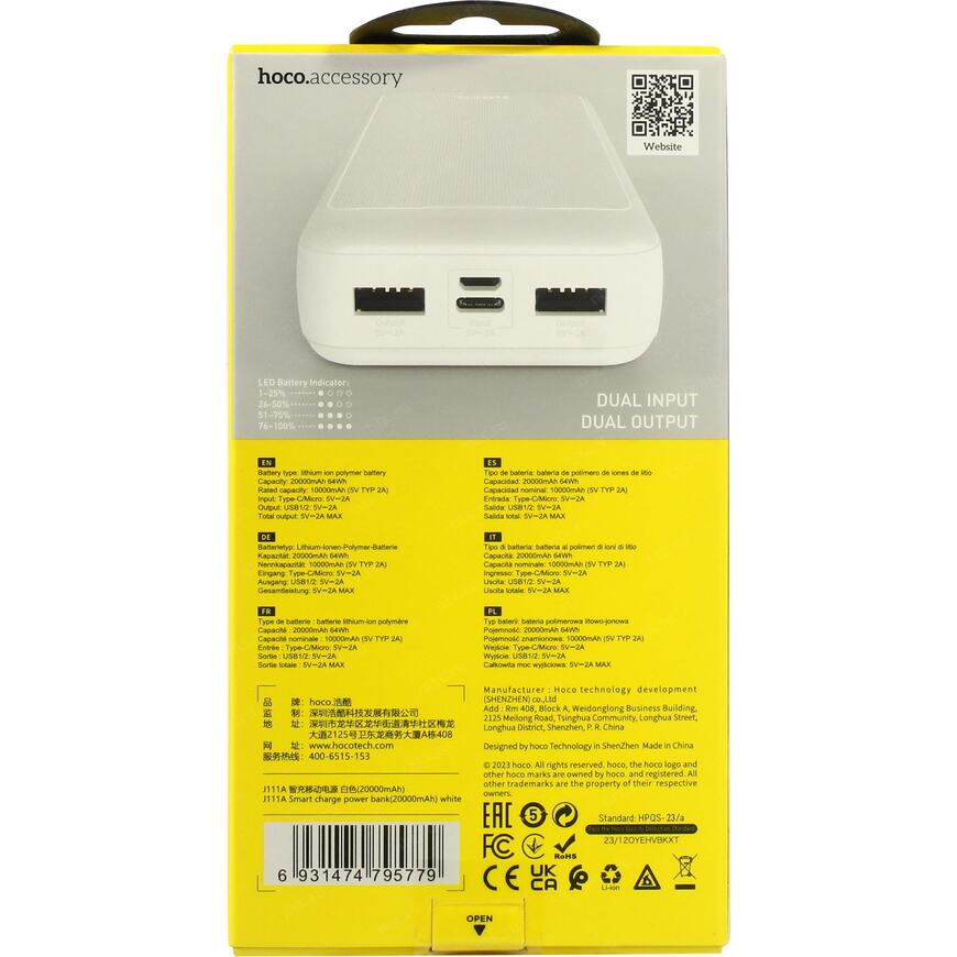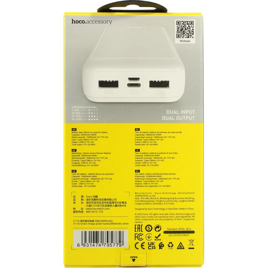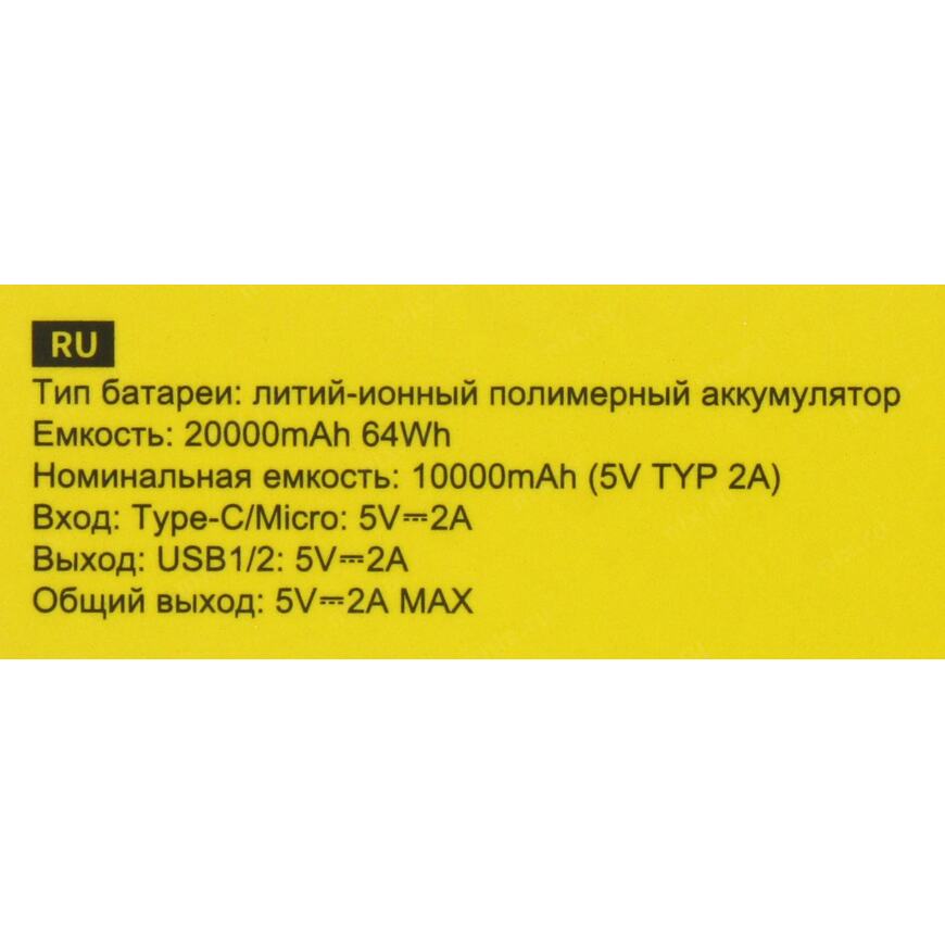20000 мАч (заявленная производителем ёмкость внутреннего аккумулятора Power Bank; реальная отдаваемая ёмкость Power Bank в пересчете на напряжение 5 В может отличаться в меньшую сторону)