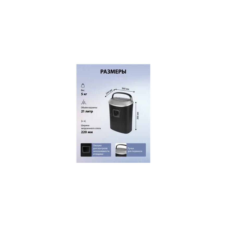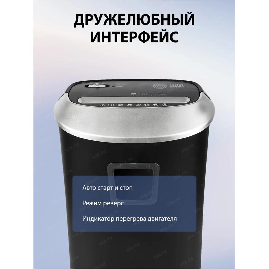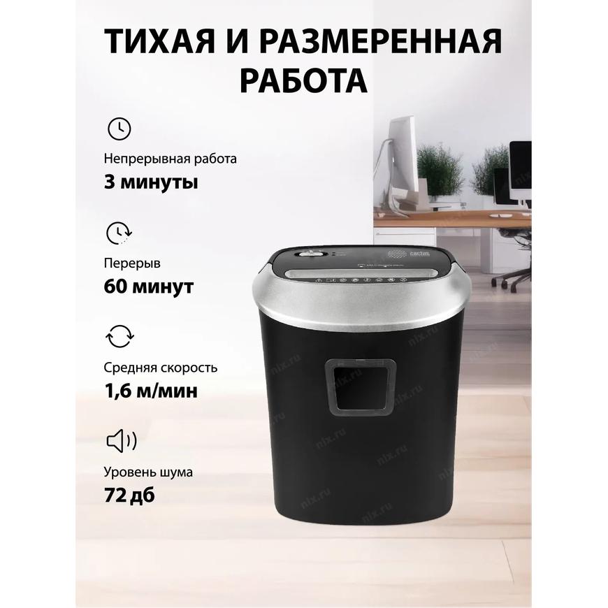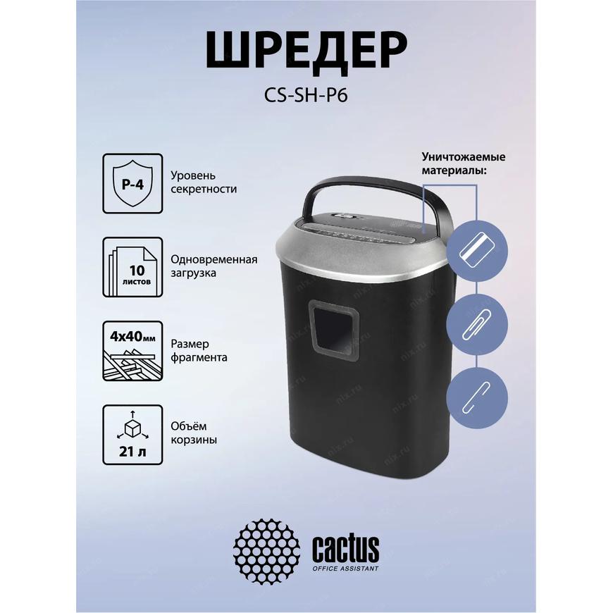 [CACTUS Уничтожители документов] Cactus Шредер CS-SH-P6 черный/серый (секр.P-4)/фрагменты/10лист./21лтр./скрепки/скобы/пл.карты