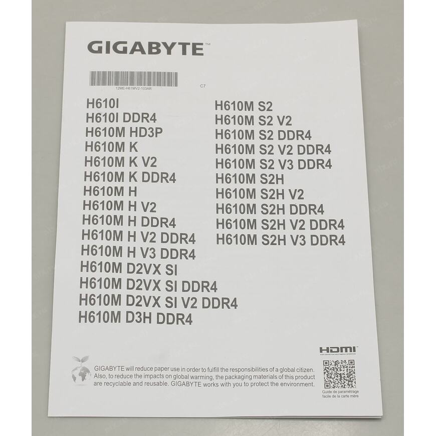 | Мат плата | GIGABYTE H610M H V3 DDR4 (RTL) LGA1700 <H610> PCI-E Dsub+HDMI GbLAN SATA MicroATX 2DDR4 |