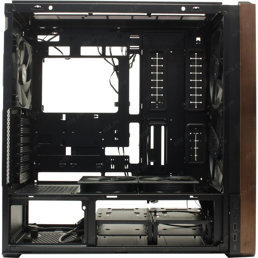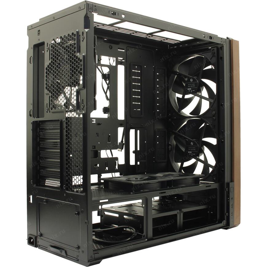 5 вентиляторов: 170 x 170, 140 x 140, 120 x 120 мм (2x 170 мм на передней, 2x 120 мм на нижней панели и 1x 140 мм на задней панели)
