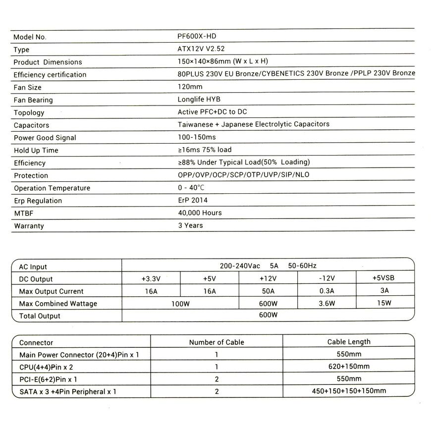 Сертифицирован на стандарт 80 PLUS Bronze, Cybernetics Bronze, PPLP.INFO Bronze