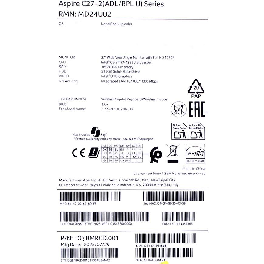 Без ОС (может быть установлен DOS, Linux, другие бесплатные ОС или noOS)