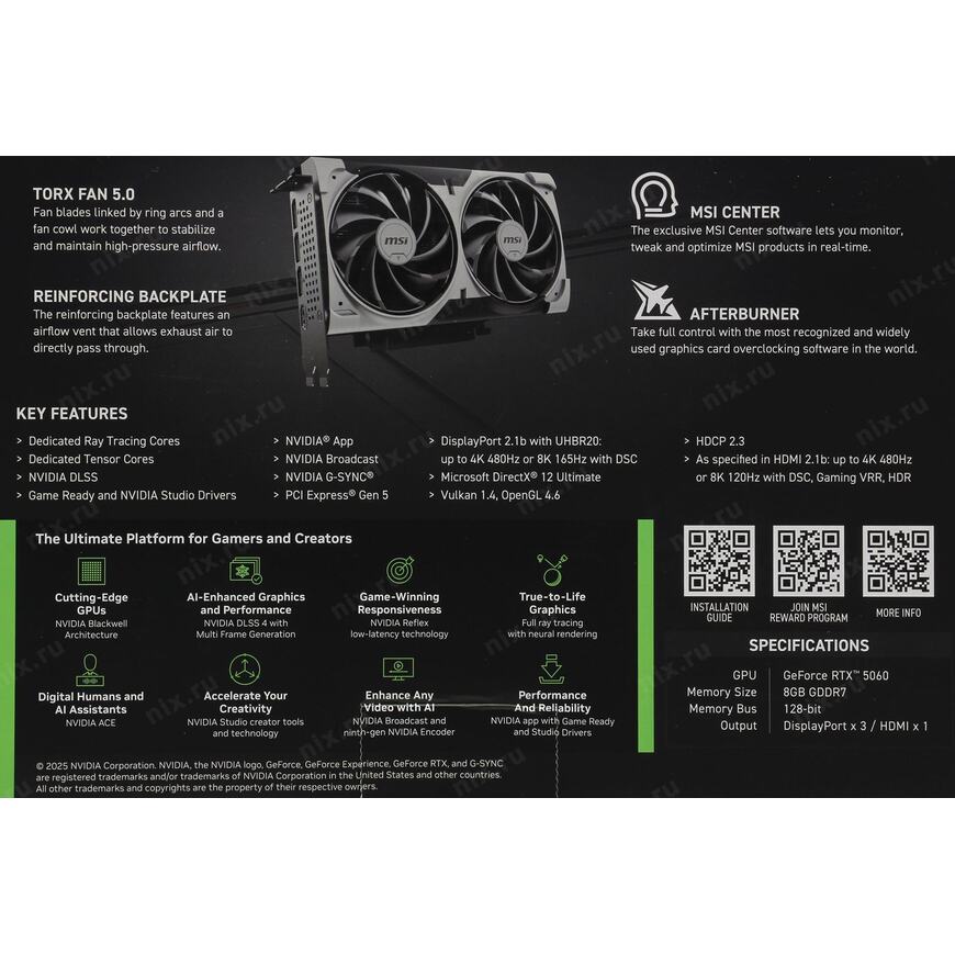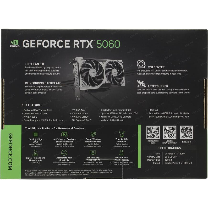 NVIDIA Ansel (создание игровых фотографий профессионального качества), Dual Bios, NVIDIA DLSS 4, NVIDIA Reflex 2, NVIDIA Broadcast, Resizable BAR, NVIDIA FreeStyle, NVIDIA ShadowPlay, NVIDIA Omniverse