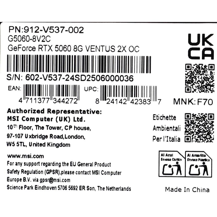 RTX 5060 8G VENTUS 2X OC