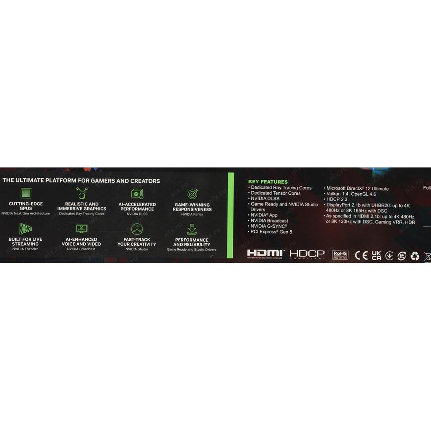 NVIDIA Ansel (создание игровых фотографий профессионального качества), Dual Bios, NVIDIA DLSS 4, NVIDIA Reflex 2, NVIDIA Broadcast, Resizable BAR, NVIDIA FreeStyle, NVIDIA ShadowPlay, NVIDIA Omniverse