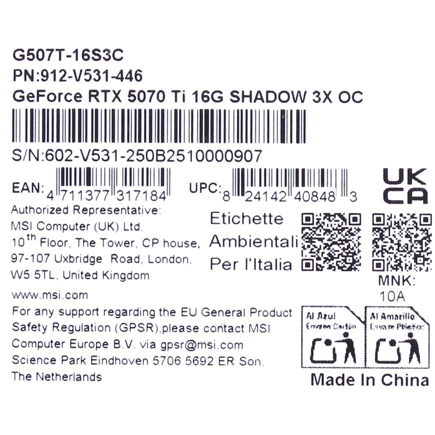 GeForce RTX 5070 Ti 16G SHADOW 3X OC