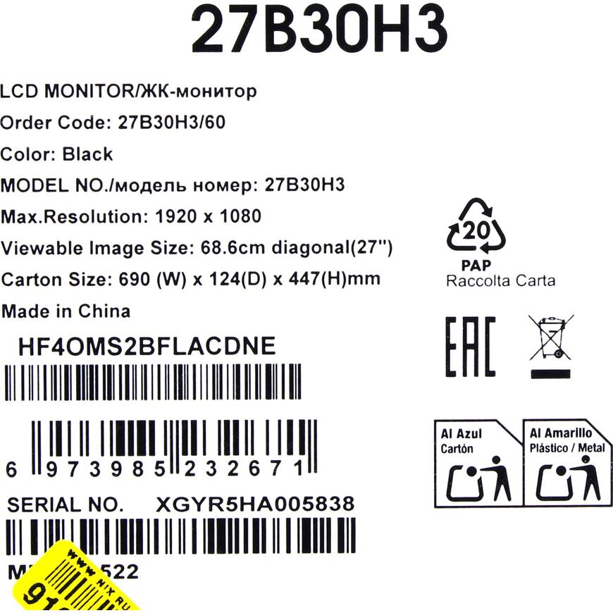 VESA 100 x 100 мм; кронштейн для крепления приобретается отдельно
