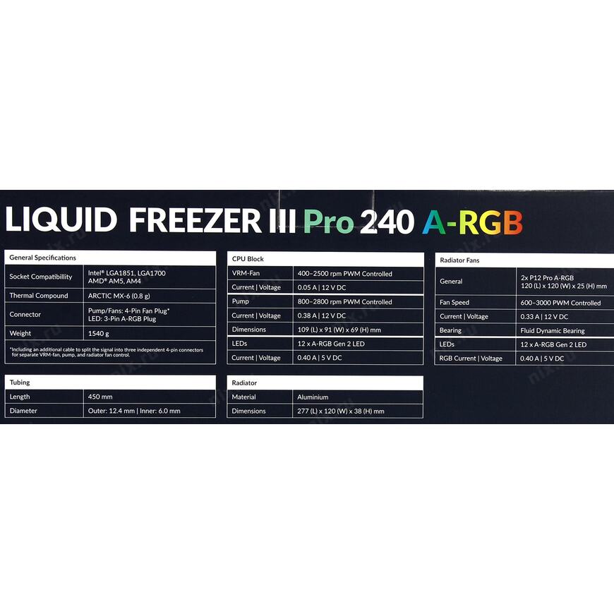 120 x 38 x 277 мм (только радиатор), 108.5 х 68.5 х 91 мм (водоблок)