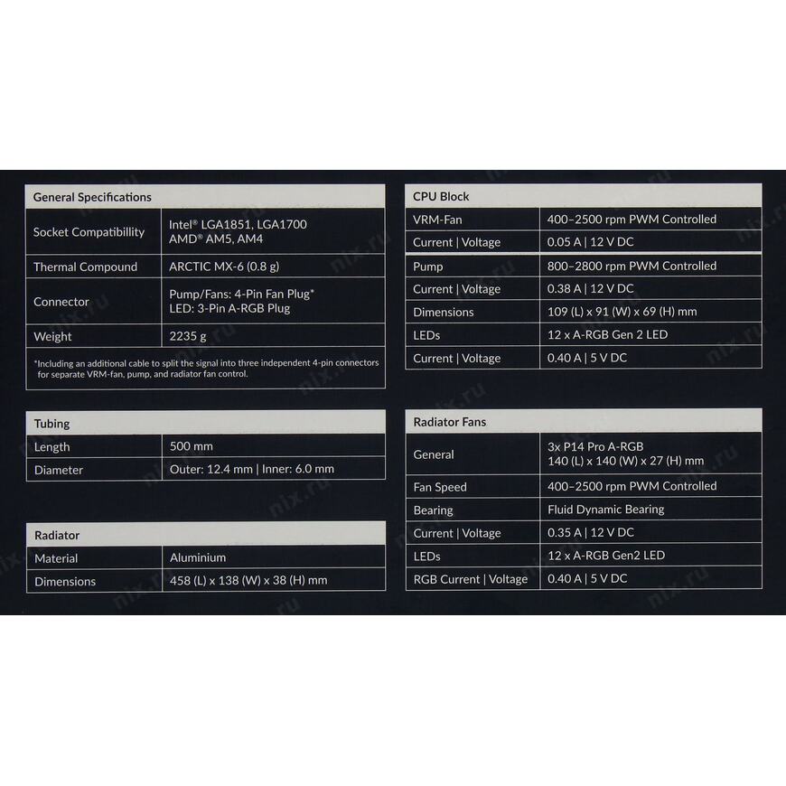 138 x 38 x 458 мм (только радиатор), 108.5 х 68.5 х 91 мм (водоблок)