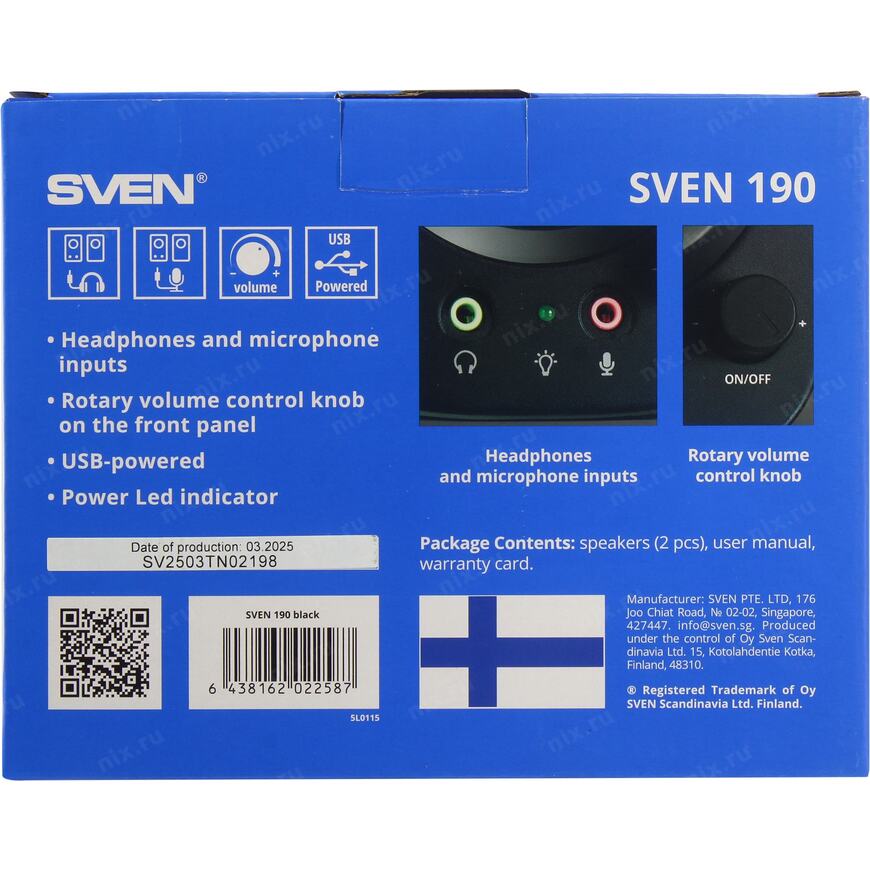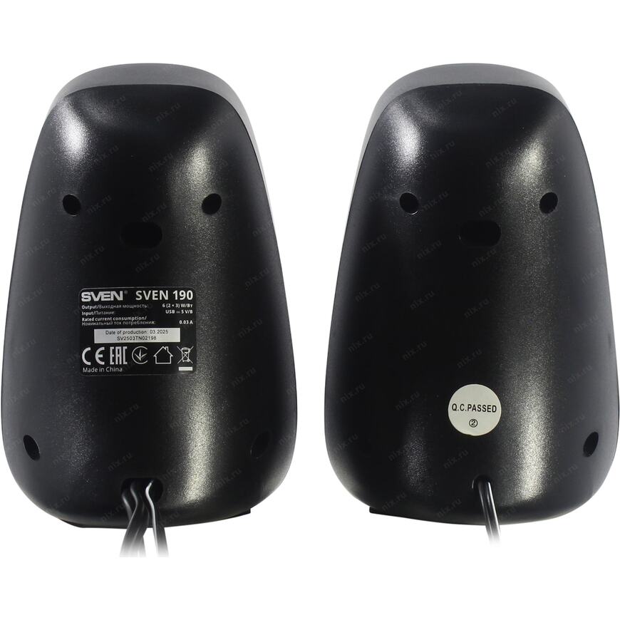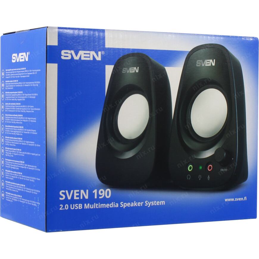 Колонки SVEN 190, 2.0, чёрный, USB, мощность 2x3 Вт(RMS)