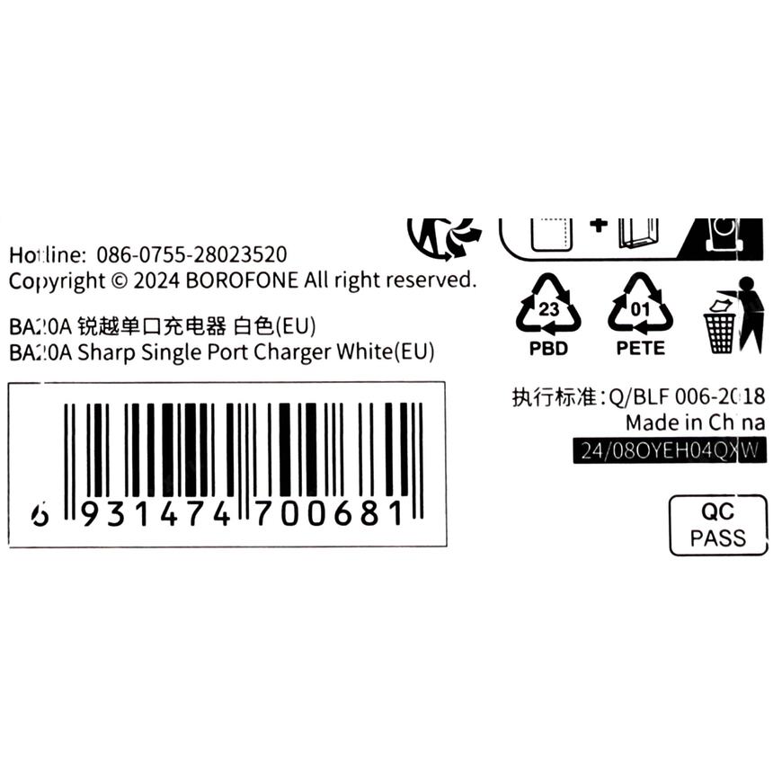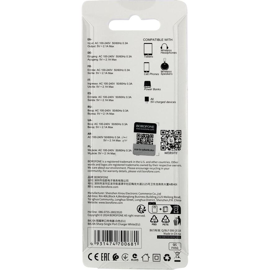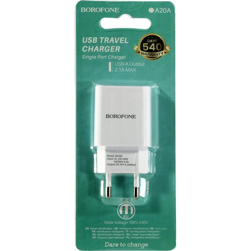 BOROFONE BA20A White <700681> Зарядное устройство USB (Вых. DC5V, 10.5W, USB)