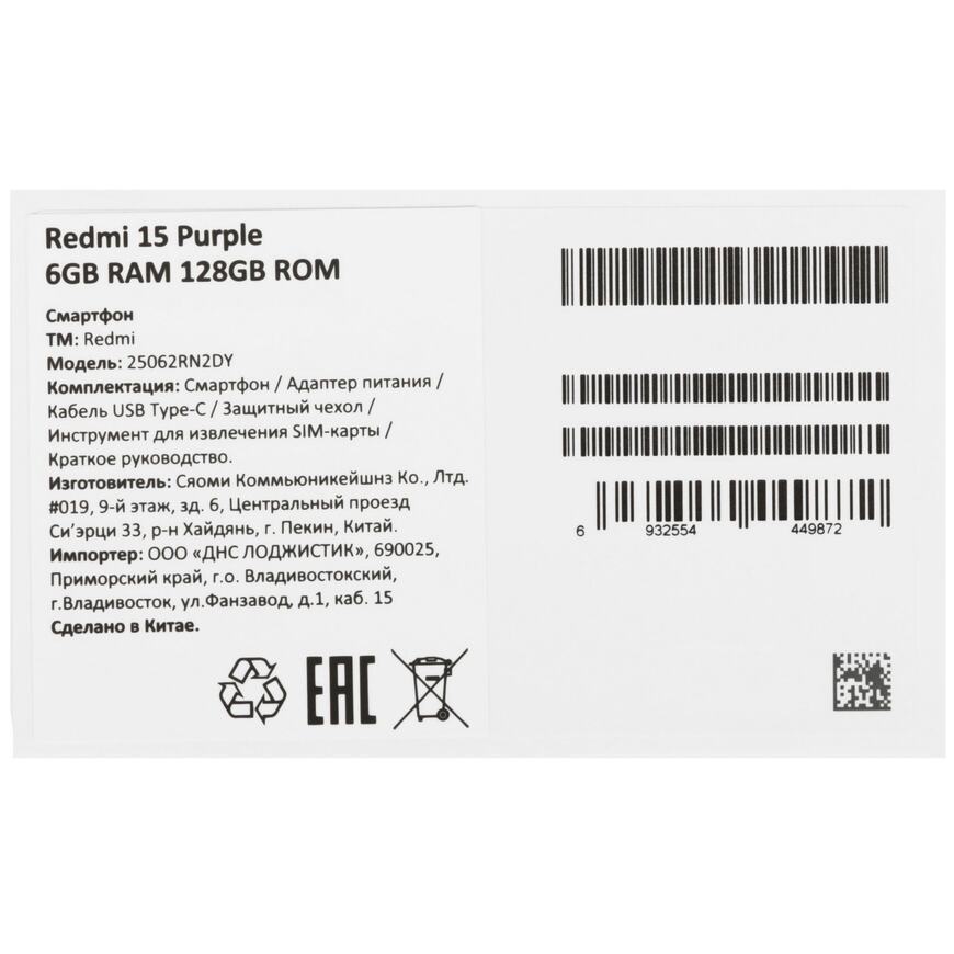 Redmi 15 Фиолетовый