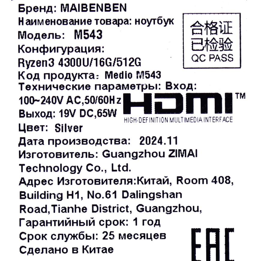 | Размеры упаковки (измерено в НИКСе) |