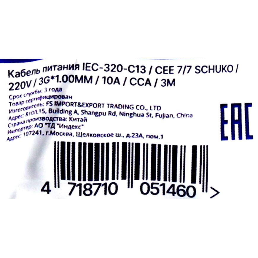 Кабель силовой компьютер - розетка 220V