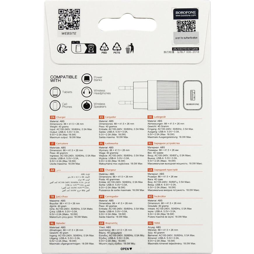 Зарядное устройство с портом USB Type A мощностью 18 Вт.