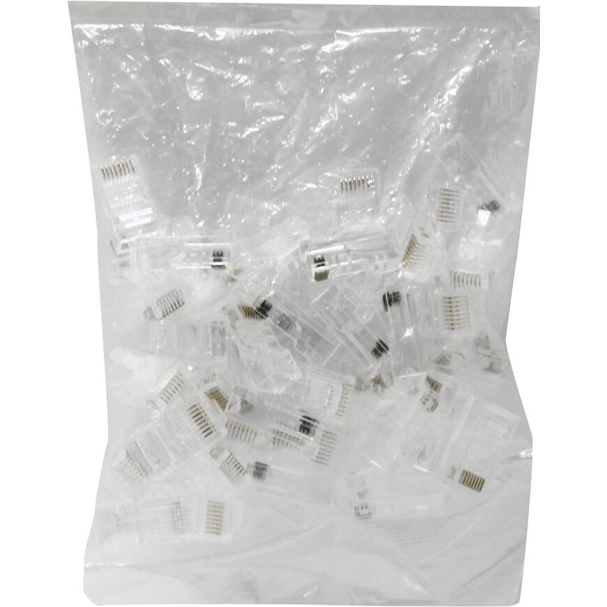 Коннектор обжимной сквозной для "витой пары" UTP. Для облегчения монтажа провода проходят через коннектор насквозь и после обжима обрезаются.