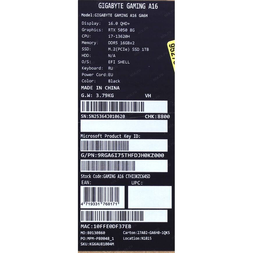 | Вес брутто (измерено в НИКСе) |