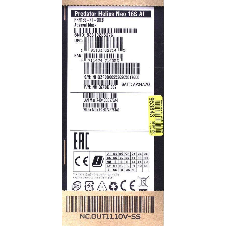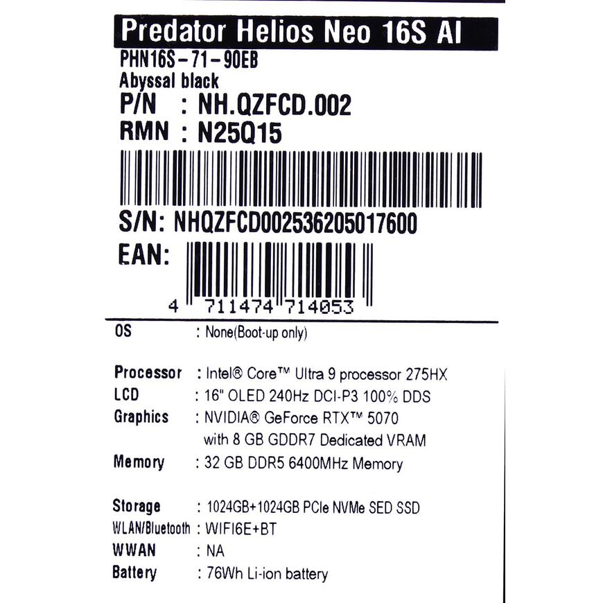 Predator Helios Neo 16S AI