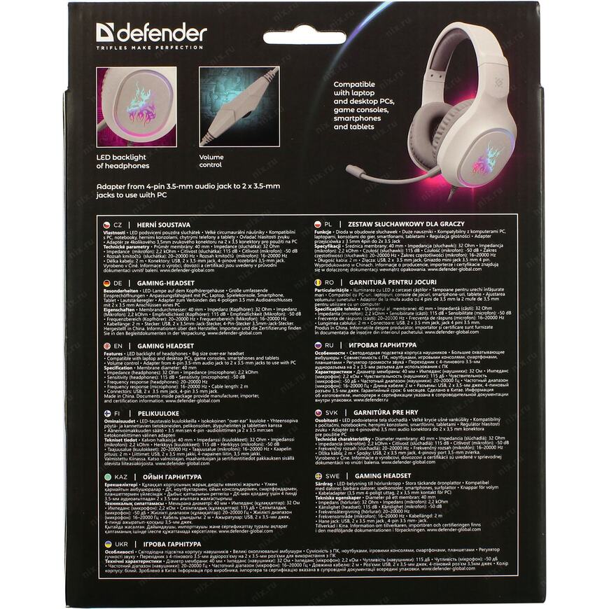 Стильная игровая гарнитура со светодиодной подсветкой, удобным подвижным микрофоном и мягкими охватывающими амбушюрами. Совместима с ПК, ноутбуками, игровыми консолями, смартфонами, планшетами.