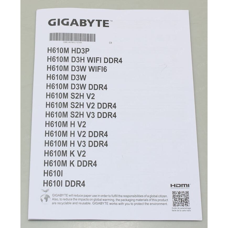 | Мат плата | GIGABYTE H610M S2H V3 DDR4 (RTL) LGA1700 <H610> PCI-E Dsub+HDMI+2xDP GbLAN SATA MicroATX 2DDR4 |