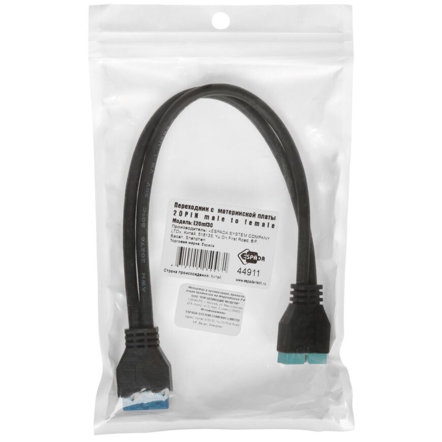 Espada Кабель-переходник с материнской платы 20pin Male to Female, 30 см <44911> ()