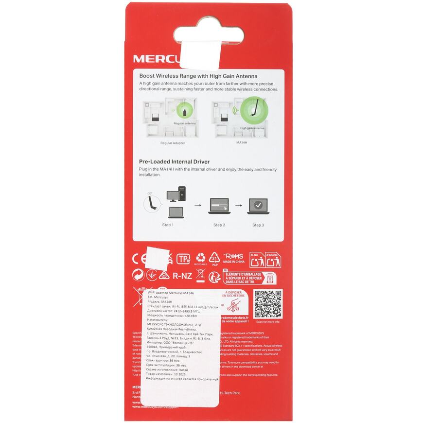 [Mercusys] Mercusys MA14H USB-адаптер высокого усиления с поддержкой Wi-Fi 6 AX300
