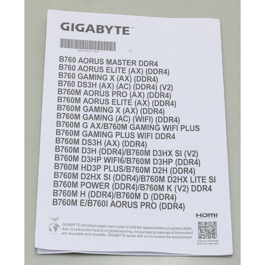 | Мат плата | GIGABYTE B760 DS3H DDR4 (RTL) LGA1700 <B760> 5xPCI-E HDMI+DP GbLAN SATA ATX 4DDR4 |